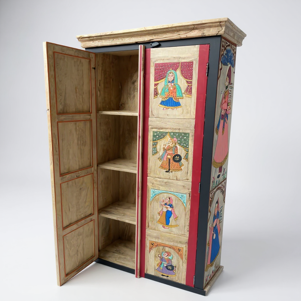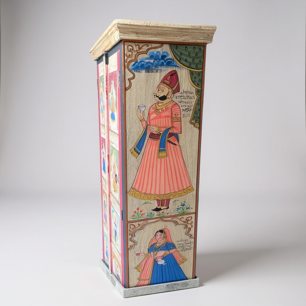 Bring home a piece of India’s artistic heritage with this stunning hand-painted story art cabinet, beautifully adorned with traditional Rajasthani miniature paintings. Perfect as a living-room console, bedroom storage cabinet, or accent furniture, it adds culture, colour, and character to any modern or classic space. Each panel is crafted by skilled artisans, making this cabinet a timeless décor treasure that blends functionality with heritage art.