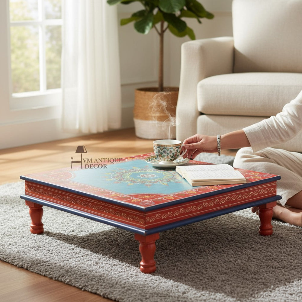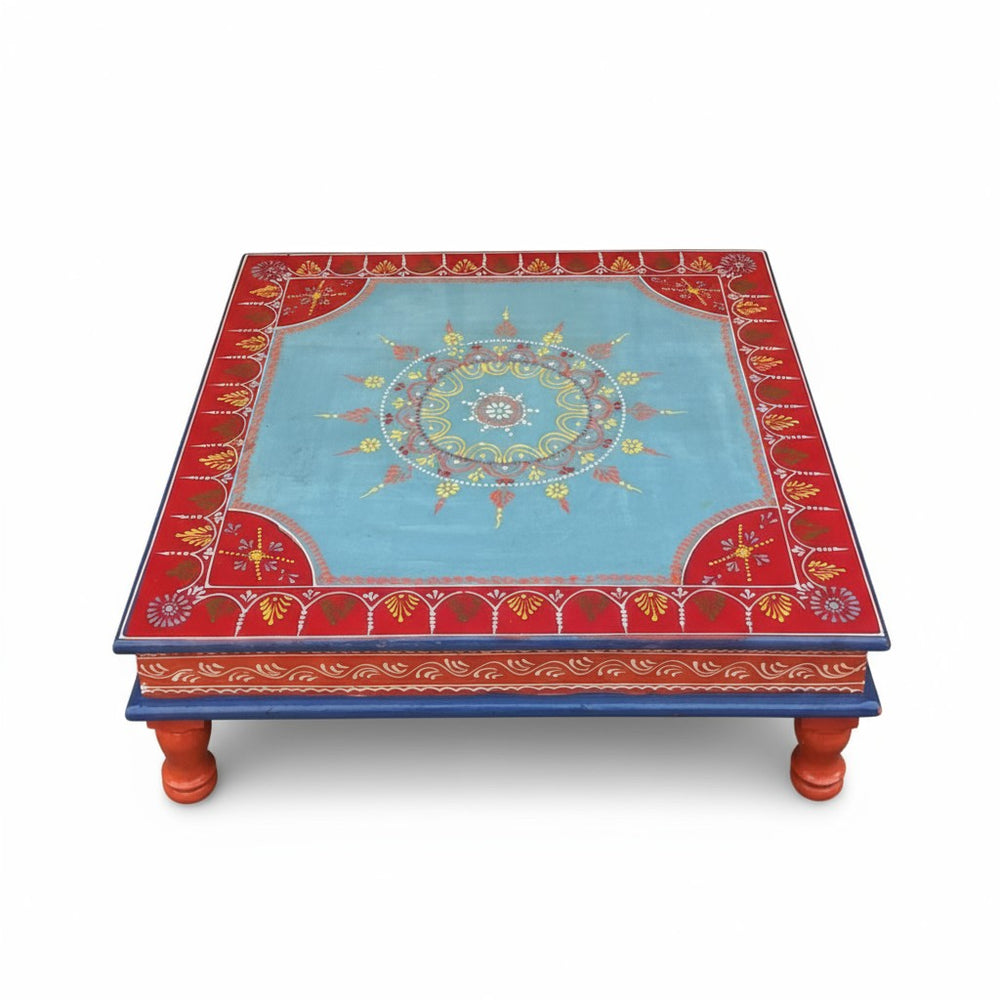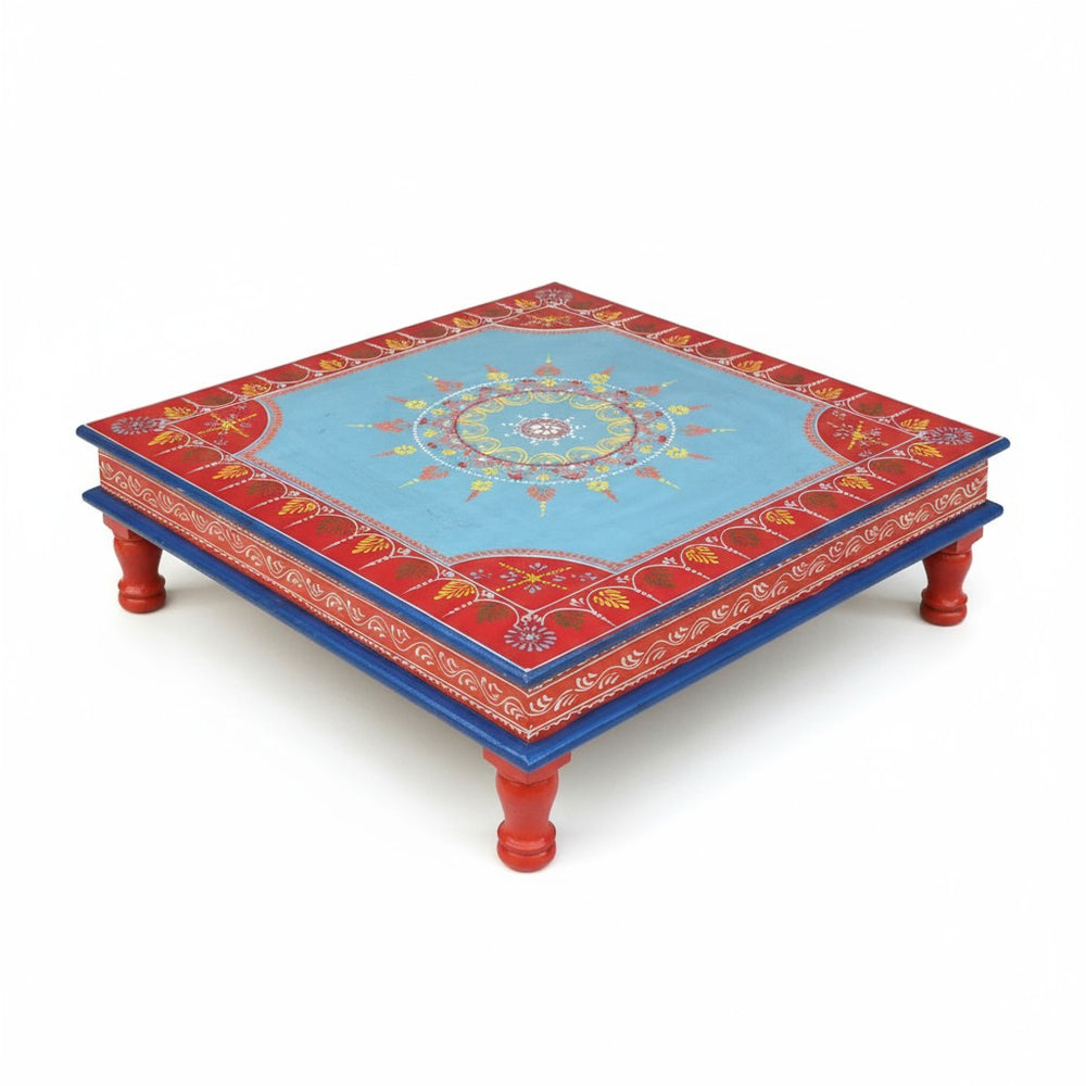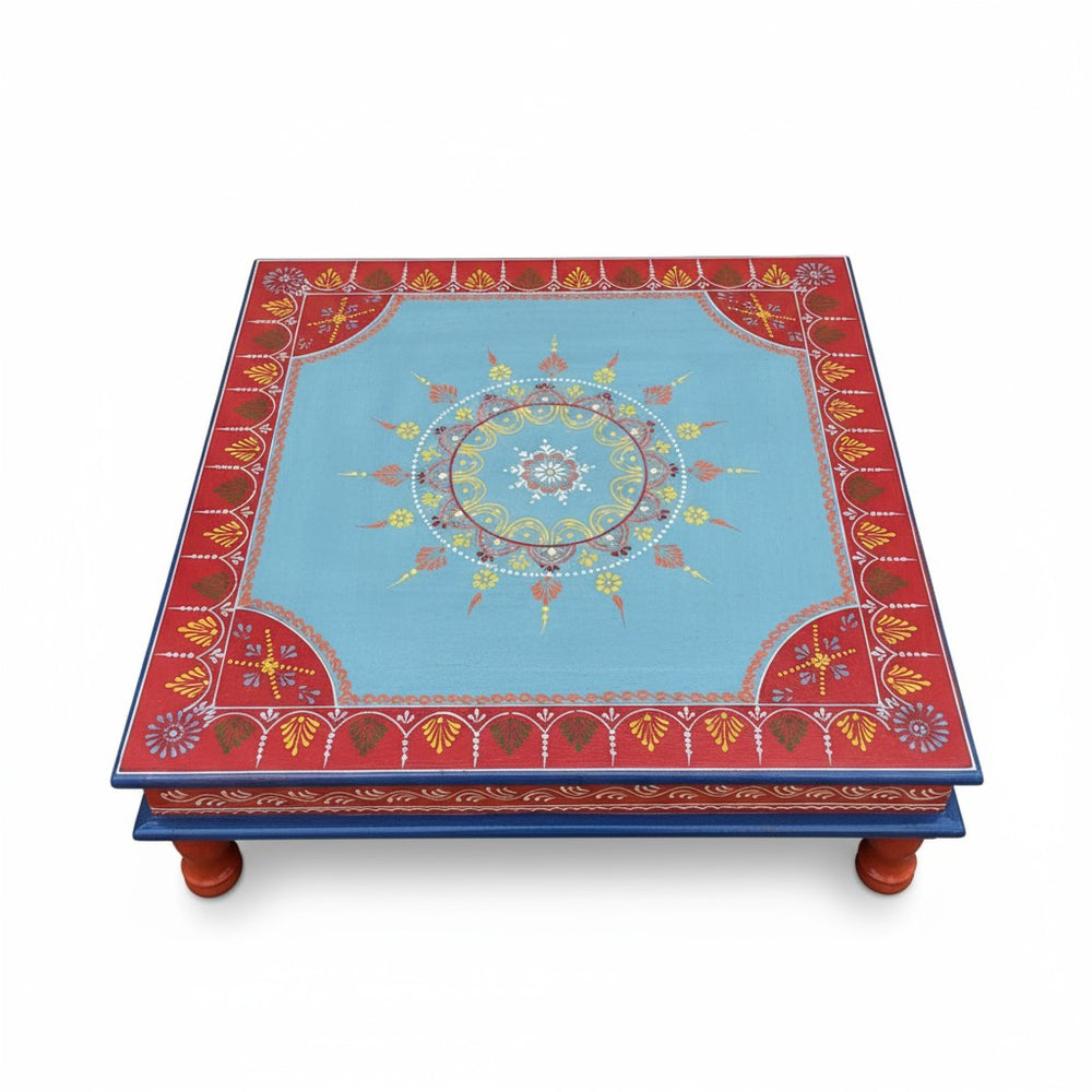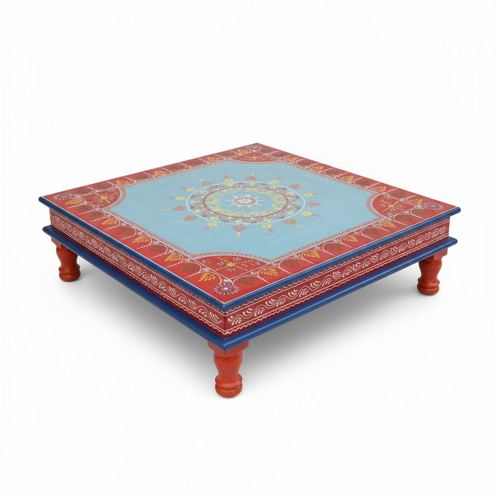 Add a touch of traditional Indian elegance to your sacred space with this Hand-Painted Wooden Pooja Bajot, beautifully adorned with vibrant rangoli-inspired artwork. Designed for daily rituals, diya lighting, idol placement, and festive ceremonies, this low-height platform brings a serene and grounded ambience to home temples, meditation corners, and spiritual décor settings. Its rich colors, artisanal detailing, and sturdy craftsmanship make it a meaningful and decorative addition to any home.