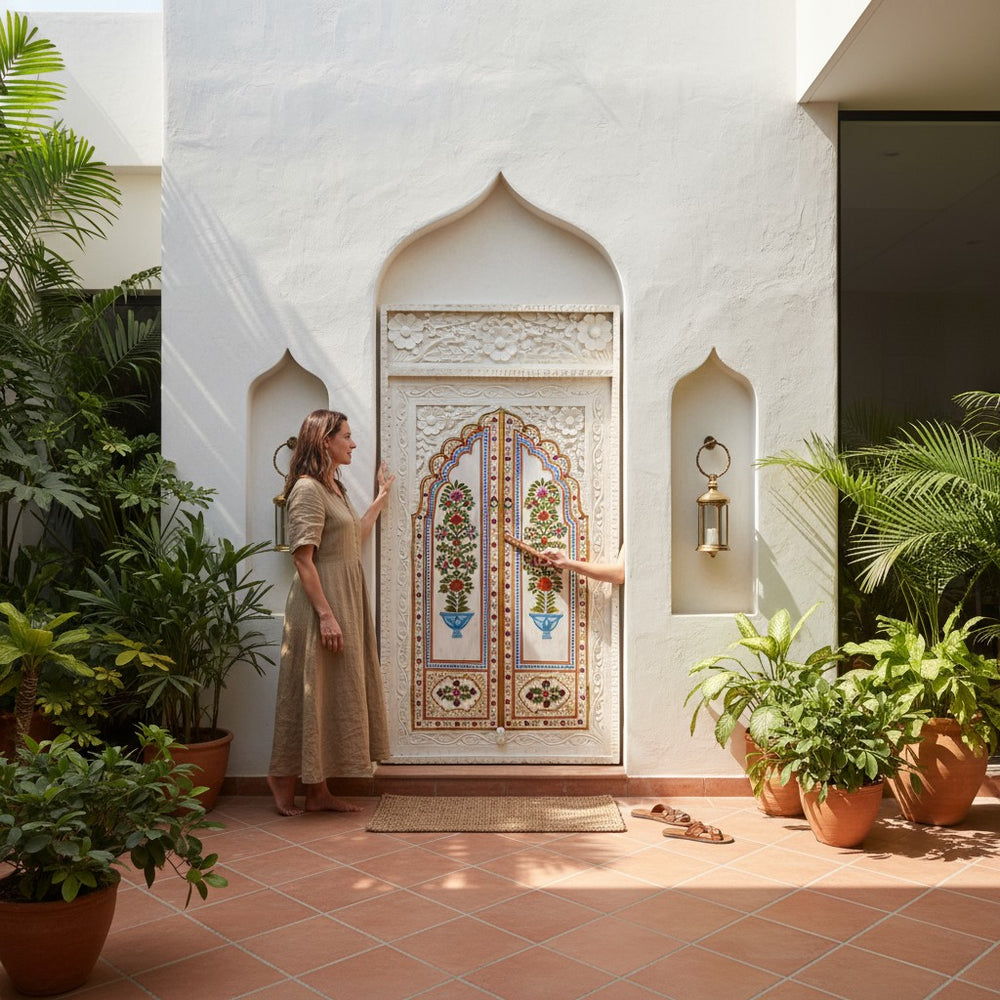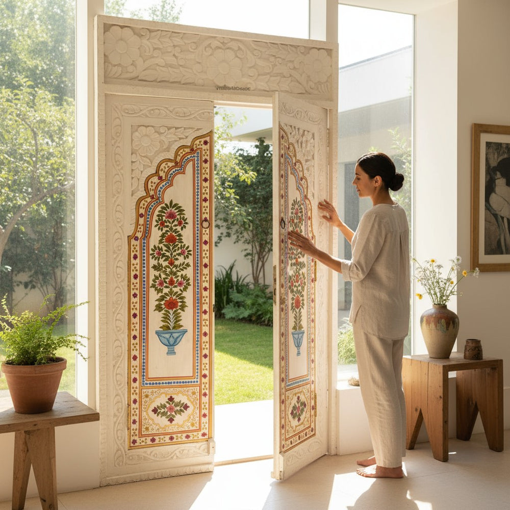 Hand-Painted Dual Doors – Adds a vibrant cultural touch when closed; serene view when open.