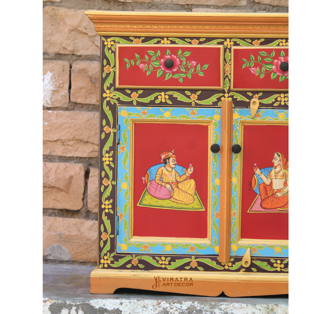 A wooden painted bedside cabinet with 2 drawers could add a lot of charm to a bedroom, especially if it’s adorned with intricate designs or vibrant colors.