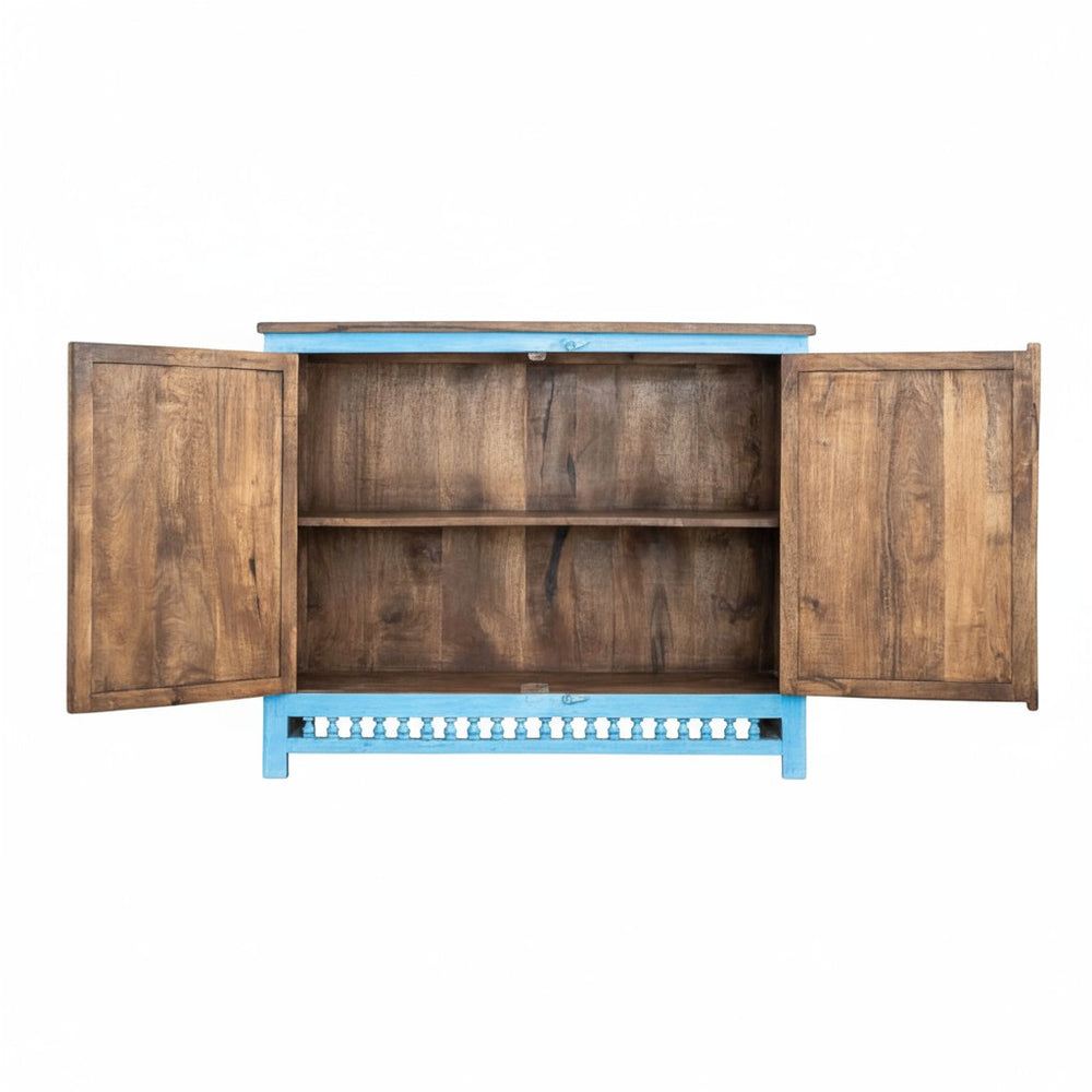 Elevate your interior with the artistic charm of this Blue Handcarved Mango Wood Sideboard, a stunning example of Indian craftsmanship by Viratra Art Decor.