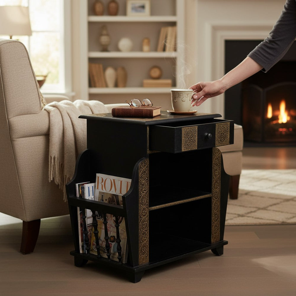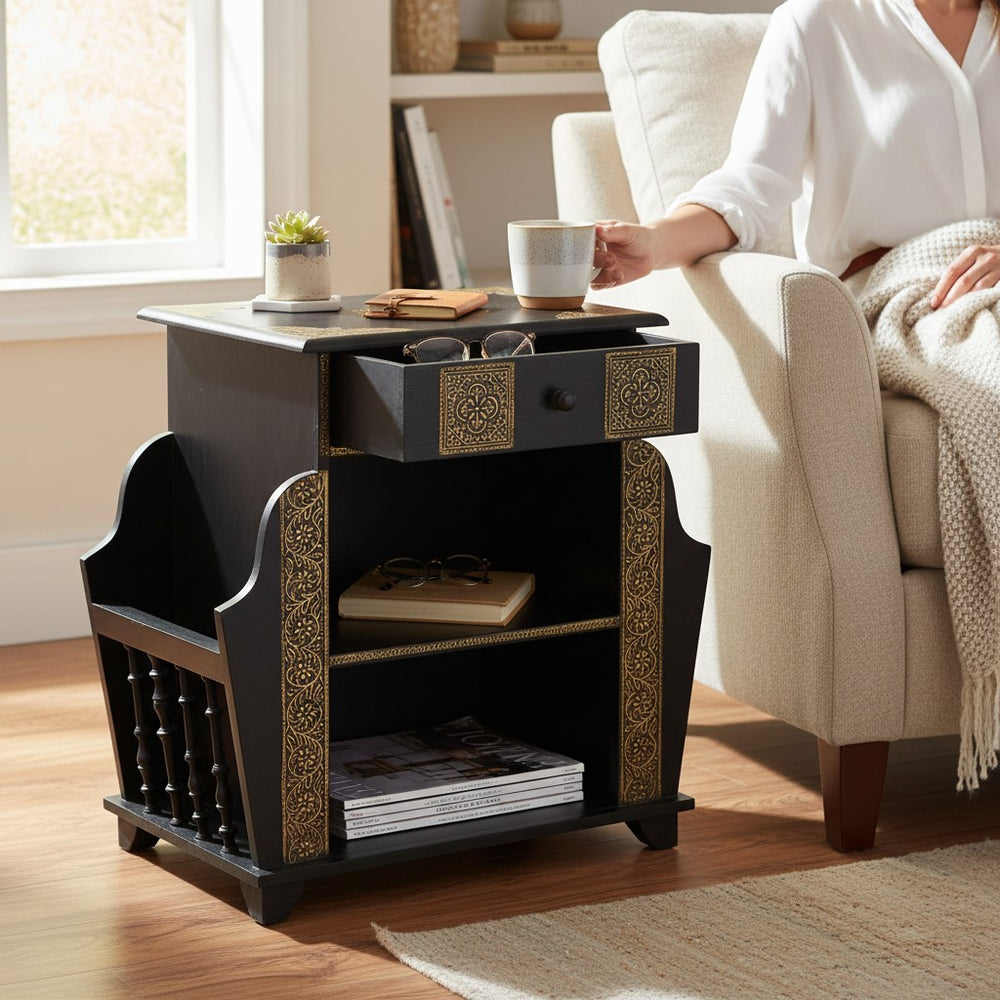 Smart Storage Layout: Includes one top drawer, a spacious open shelf, and built-in side magazine racks for tidy organization.