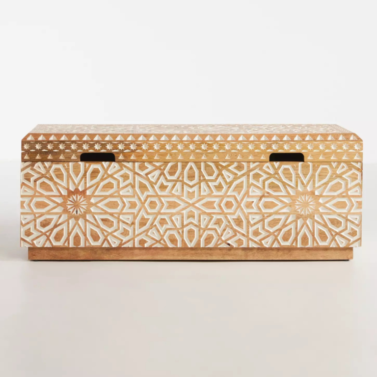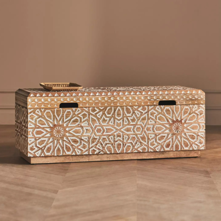 The Crafts Hand Crafted Trunk is a perfect blend of traditional artistry and modern functionality. Handcrafted from sustainable mango wood by skilled artisans, this trunk offers a durable storage solution while serving as a stunning statement piece for your home. Its intricate hand-carved designs showcase heritage craftsmanship, making it ideal for living rooms, bedrooms, or hallways. Beyond its aesthetic appeal, this trunk provides practical storage for linens, clothes, keepsakes, or other essentials, combining style and utility in one timeless piece.
