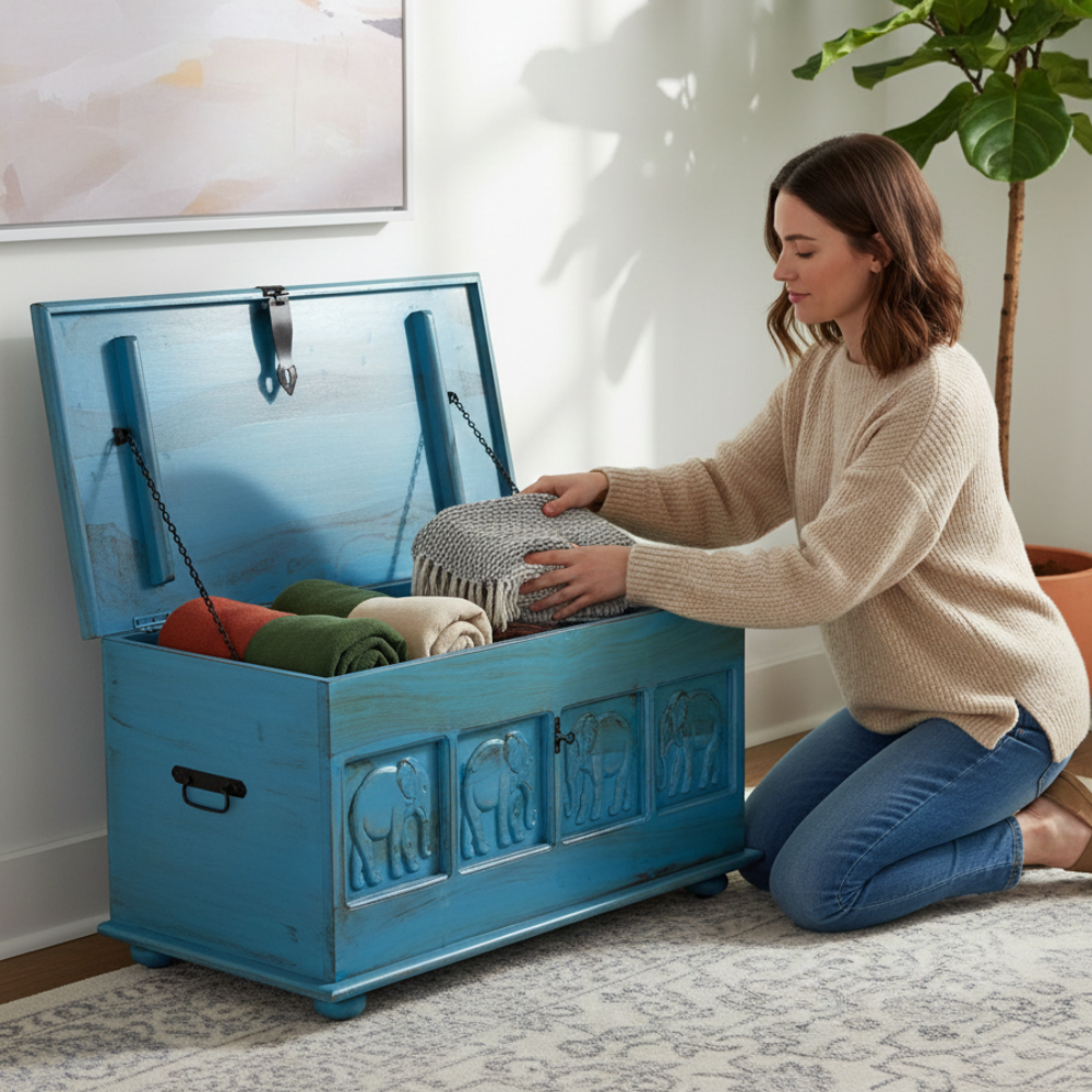 ✔ Conversation Piece – Unique artisan-made trunk that stands out as a functional décor element.