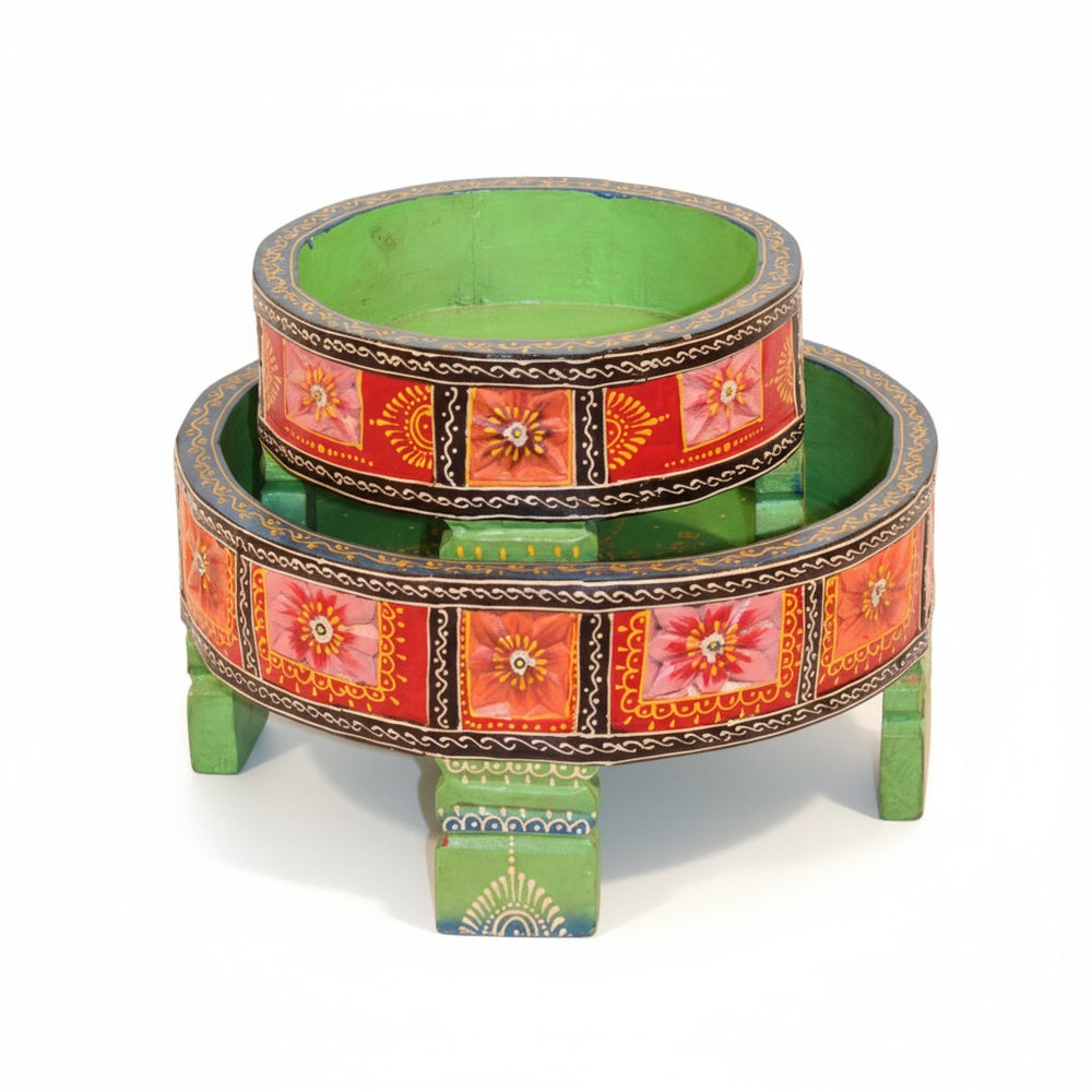 Add a burst of vibrant Indian artistry to your home with this Handicraft Chakki Coffee Table. Perfect as a centerpiece, snack server, décor riser, or plant stand, it brings warmth and culture into any modern, boho, or traditional living space. Its hand-painted floral patterns and bold colors make it an eye-catching accent that effortlessly uplifts cozy reading corners, tea-time setups, and eclectic interiors.