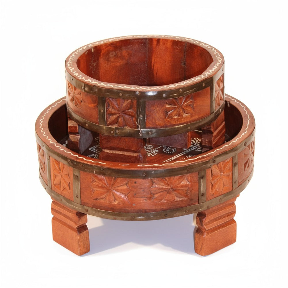 Bring rustic charm and global artisan appeal into your home with this handcrafted Wooden Chakki Table Planter. Inspired by traditional Indian grain-grinding chakkis, it blends heritage carving, hand-painted detailing, and elevated wooden legs for a warm, earthy aesthetic. Perfect as a decorative planter stand, accent table, or centerpiece in living rooms, patios, entryways, or garden spaces. Its versatile design makes it equally beautiful indoors or outdoors, adding texture, culture, and natural elegance to any setting.