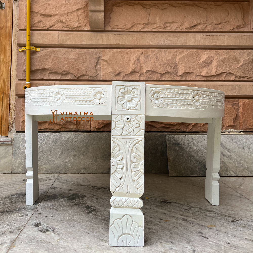 This white coffee table also called chakki table is excellent and adds a unique look to your décor.